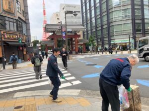 地域貢献活動の一環として、芝浦港南地区安全・美化協議会主催の「芝地区クリーンキャンペーン~路上喫煙ゼロのまち!~」に参加し、カギの救急車事務局のある 浜松町駅・大門駅周辺エリアの清掃活動を行いました。